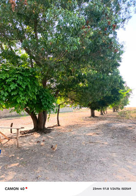 Das 1. Gebäude steht, die Mangobäume gedeihen prächtig und der Rasen wächst. Wasser muss nicht mehr geschöpft werden, es wurde ein Behälter für Regenwasser gebaut. Die Baustoffe können jetzt in einem gesicherten Raum gelagert werden. Das 2. Gebäude wird im Mai fertiggestellt. Die Fenster sind aus Stein, Gläs wäre Luxus.